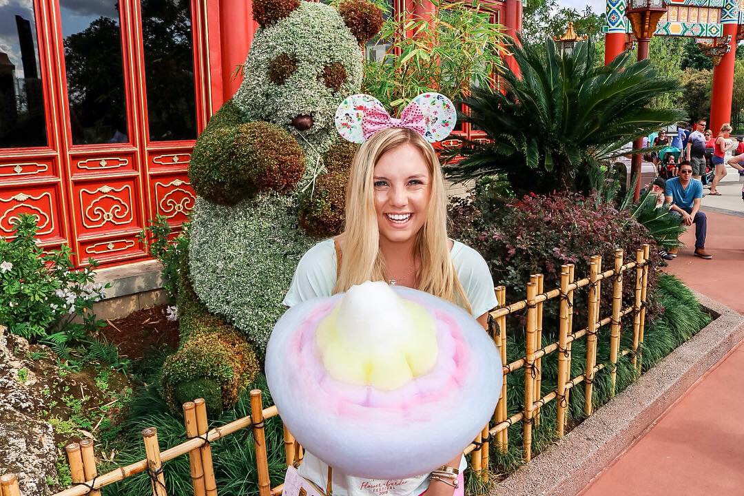The Flower and Garden Festival has great food, music and topiary! My favorite snacks include Frushi at Hunami, 5-Layer Spring Fantasy Cotton Candy at Lotus House (which is only available after 3:30 PM-be sure to line up around 3 PM or the line will take over an hour as they individually make these to order), Roasted Cauliflower/Honey Marscarpone Cheesecake from The Honey Bee-stro, and La Vie en Rose from Fleur de Lys. Be sure to check out the concert list as well as the new merchandise that is exclusive to Epcot’s Flower and Garden Festival!