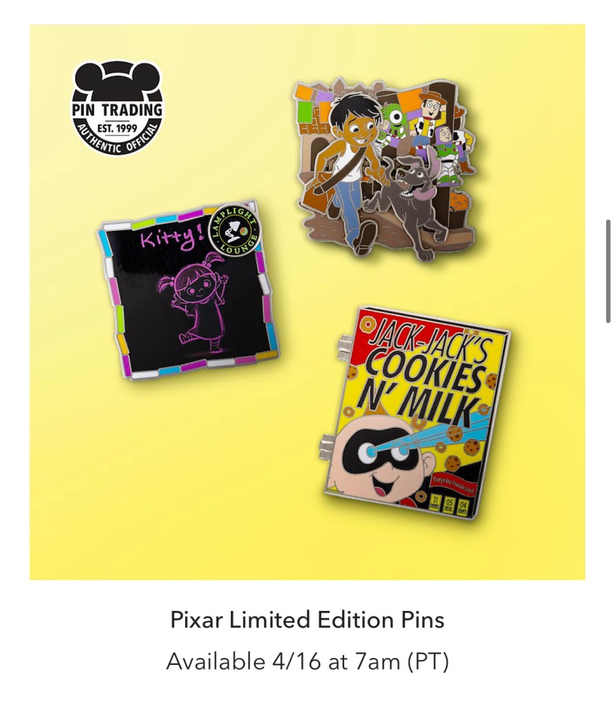 Pixar Limited Edition Pins Available 4/16 at 7 AM PT (10 AM EST)