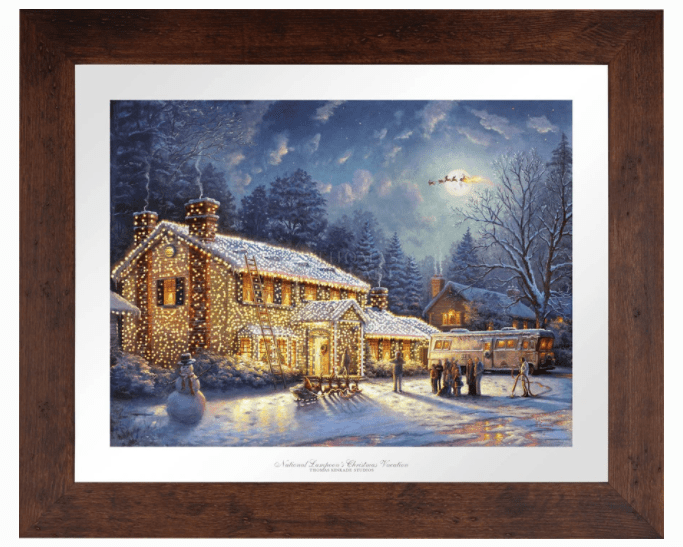Three of my favorite Art of Entertainment Holiday Art Pieces are: National Lampoon’s Christmas Vacation, Mickey and Minnie Evening Sleigh Ride and Graceland Christmas. (All are pictured below)
